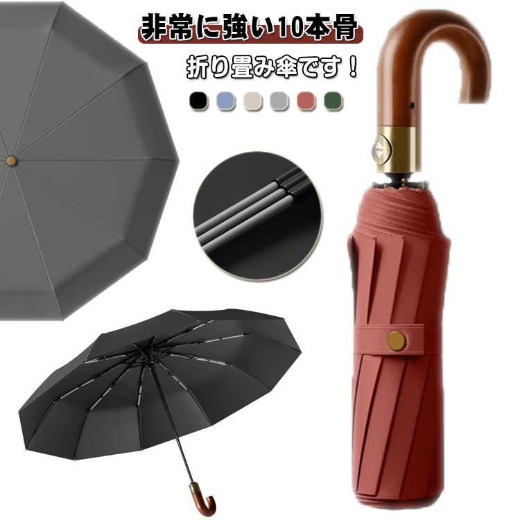 風に強い 自動開閉 大きいサイズ 遮光 ワンタッチ メンズ 折りたたみ傘 日傘 遮熱 超 ビジネス 木製 持ち手 ブラックコーディング 10本骨 フォ