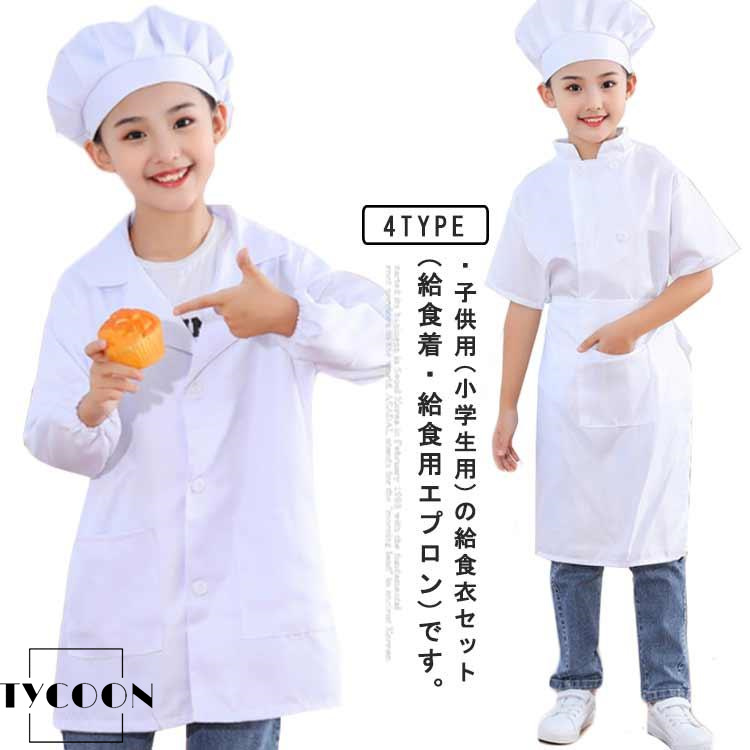 給食白衣 キッズ 3点セット 小学校 子供用 給食衣 学校給食 エプロン 帽子付き 給食 白衣 学校 半袖 長袖 選べる2タイプ 男の子 女の子 前ボ