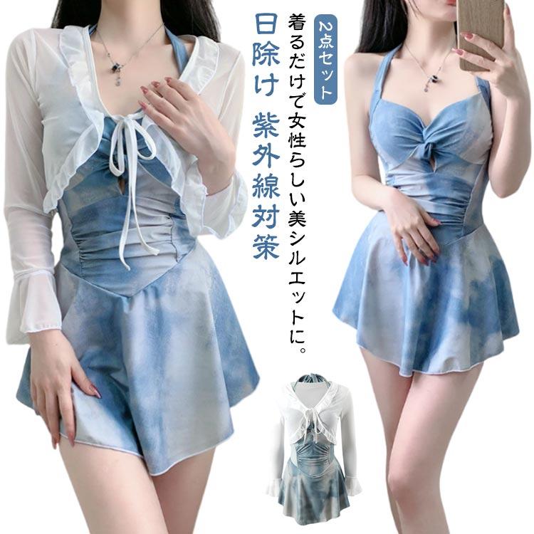 セクシー ワンピース水着 スイムウェア ラッシュガード付き キャミワンピース みずぎ レディース ギャザー フレア かわいい 2点セット タイダイ