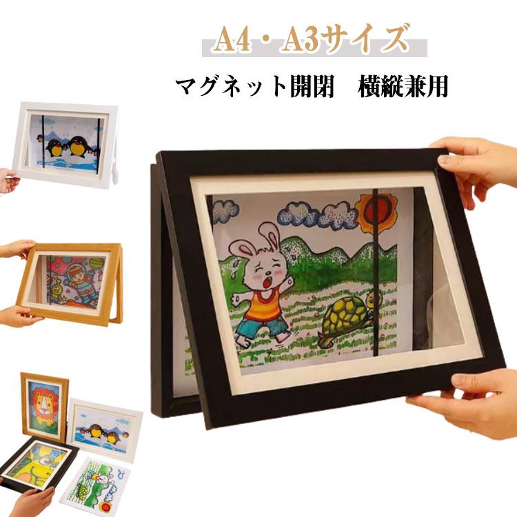 額縁 アートフレーム 横縦兼用 絵画 子供の絵を飾る 収納 画用紙 A3 壁掛け マグネット開閉 木製 作品 フォトフレーム 写真 A4 保管 ポスタ