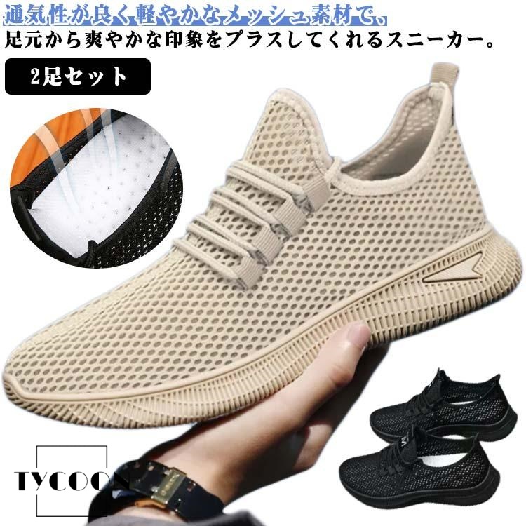 2足セット メッシュスニーカー メンズ メッシュ スリッポン ランニングシューズ 軽量 スニーカー ランニング 夏 サマーシューズ シューズ 大きサイ