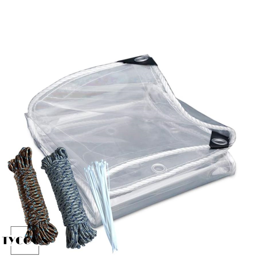 【製品詳細】 カラー:透明 サイズ:1m×2m / 2mx3m 厚さ:0.35mm ロープ:ナイロン素材 ハトメ:合金材質 付属:ロープ1本10m / 結束バンド20本