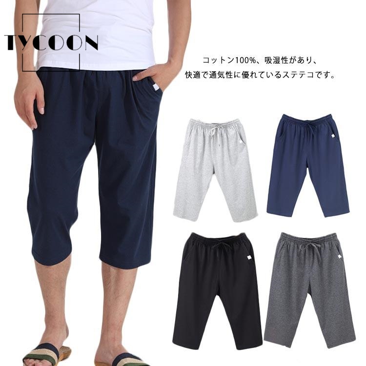 ステテコ メンズ 綿 夏 おしゃれ ひざ下丈 ルームウェア 吸汗速乾 UVカット 7分丈 ヒザ丈 パジャマ 部屋着 ハーフパンツ 涼しい すててこ 下