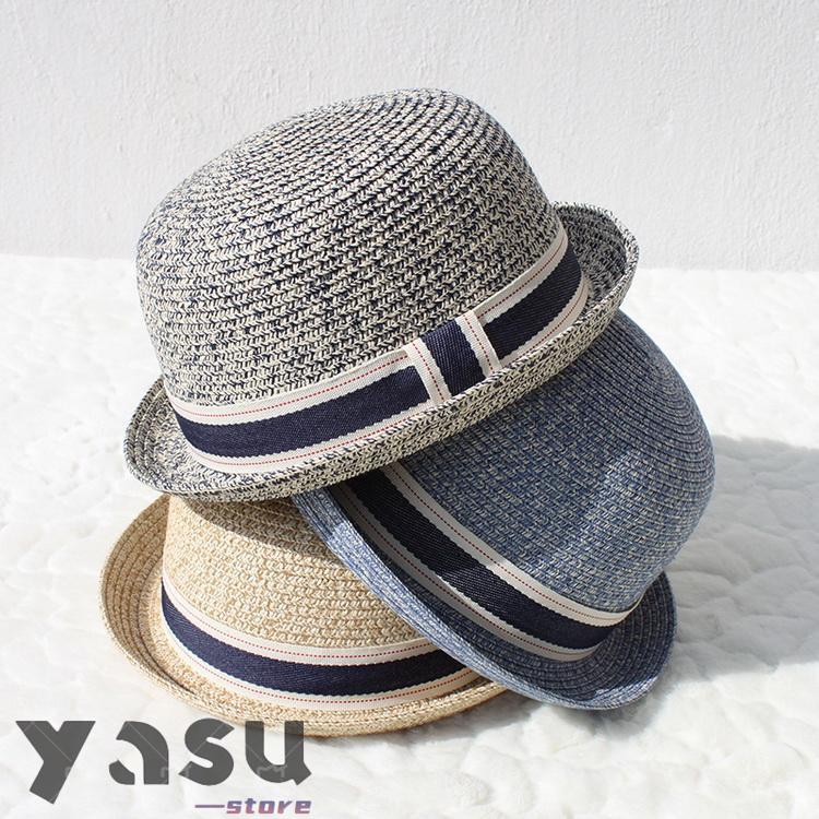 ボーラーハット メンズ レディース 麦わら風帽子 中折れ帽 ペーパーハット 日焼け防止 日よけ 夏 サイズ調整
