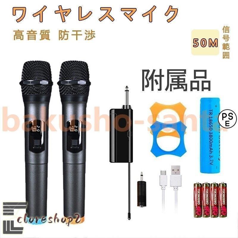 ワイヤレスマイク カラオケ 2本セット ダイナミックマイク ハンドヘルド型 メタル 無線 ミニレシーバ付き 6.35MMジャック カラオケ/パーティー/ステージ