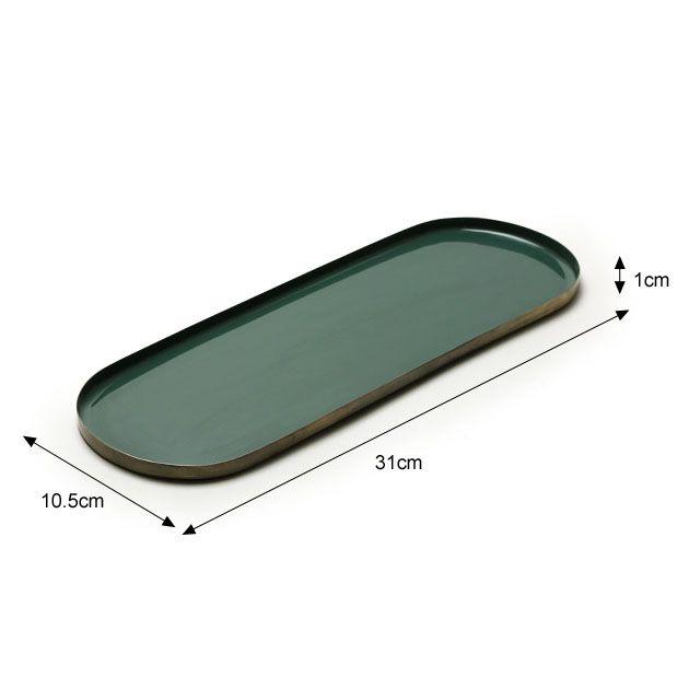 金属製のトレイ。表面は落ち着いたニュアンスカラーが塗られており、側面に見える金属の素材がアクセントになっています。サイズごとに色が変えてあり、重ねて使用することで印象の変わるトレイです。