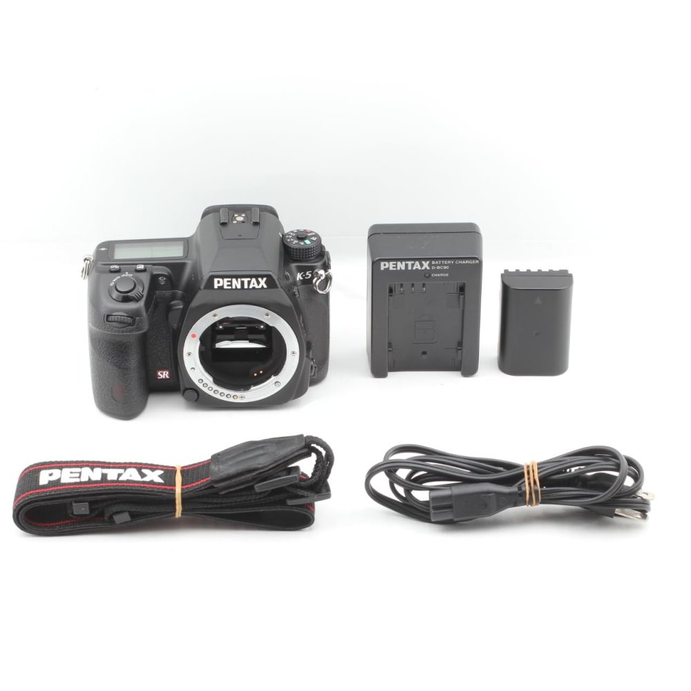 「商品状態」【商品コンディション】AB品【安心の30日間保証付き】【外観】スレ程度で目立つキズは無く全体的にきれいで良い状態です。【光学系】きれいです。カビやくもり、傷はありません【動作】確認済み 【付属品】純正充電器、純正バッテリー、その他写真に写っているものがすべて付属します。 ■ 初期不良の場合30日以内でしたら全額返品で対応させていただきます。安心してご利用くださいませ。「商品情報 (新品の場合) 」高精細フルHD動画と動画簡易編集機能も搭載し、伝統のKシリーズに先進機能が満載。高速AF(フォーカス・レリーズ・コマ速優先切替)。7コマ/秒高速連続撮影。フルHD動画。大型高精細3型約92.1万ドット液晶。防塵防滴/-10℃動作保証。高感度ISO80-51200。カスタムイメージ「リバーサルフィルム」「銀残し」搭載。構図微調整。自動水平補正。電子水準器(あおり追加)。自動位置ずれ補正HDR 「主な仕様」●PENTAX K-5 ブラック●PENTAX