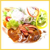 国産牛肉豚肉のハンバーグと甘口のハッシュドビーフ まろやかなビーフシチューのセットです
