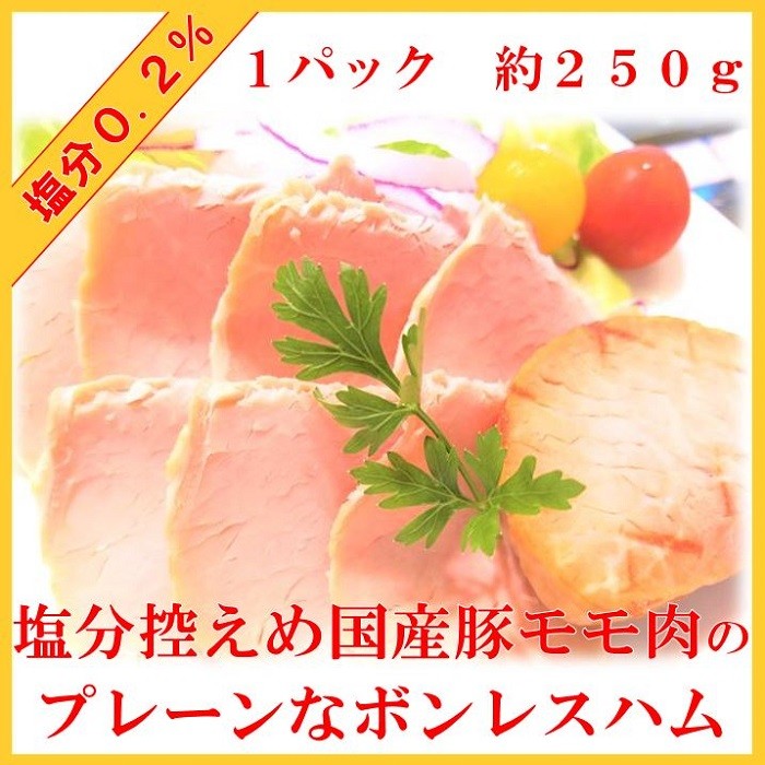塩分が少なく(約0.2%)プレーンな味わいのやわらかいハムです。