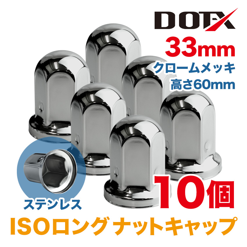 ナットキャップ ナットカバー 33mm 10個 ISO ロング トラック クロームメッキ 高さ60mm 鏡面 ステンレス ホイールナット用 DOT-X