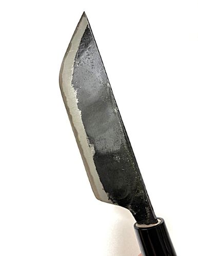 大量生産の家庭用包丁とは異なり、本品は野菜収穫という現場作業に特化して鍛え上げられた、実用本位の黒打収穫包丁です。
