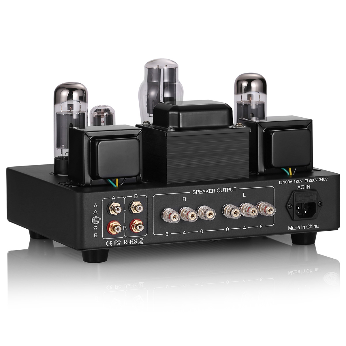温かい音色の背景には、確かな性能を支える高品質な内部部品への投資があります。電源の心臓部には、磁気漏れが少なく安定給電に貢献する日本製Z11鉄芯を採用した160Wトランスを搭載。信号の経路には経年変化に強いALPS社製の精密ポテンショメーターを採用し、音量調整時のチャンネルバランスの良さを確保。さらに、スピーカー端子には接続抵抗を低減する金メッキ処理を施しています。一つひとつの部品選定が、ノイズフロアを低く抑え、真空管が本来持つ美しい音色を余すところなく引き出す基盤となっています。
