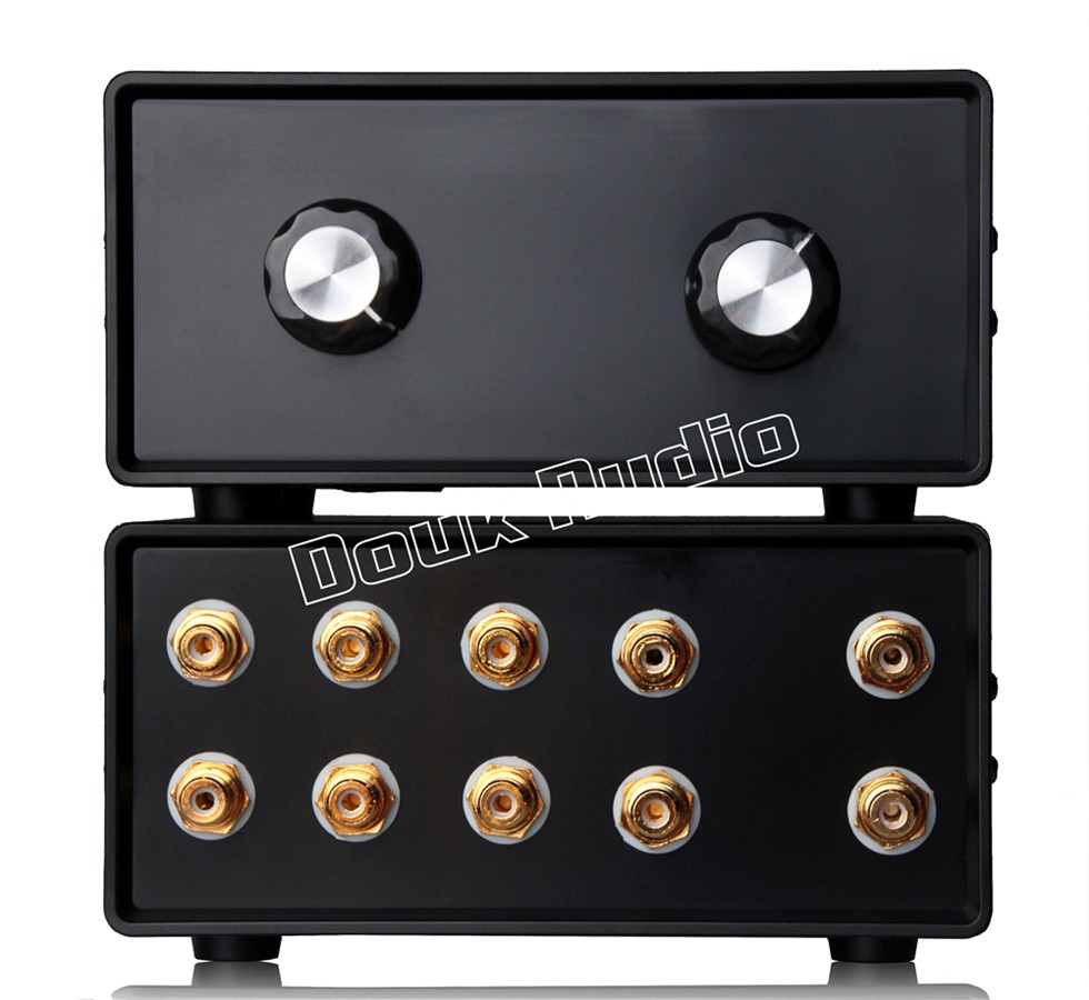 【新登場!】 Douk Audio ステレオ 4-IN-1-OUT RCA信号入力 オーディオスプリッタ スイッチャー 音量調整ボタン付き 送料無料