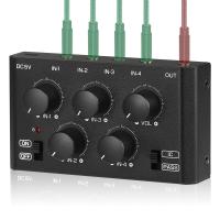 Nobsound MC5-BXは、4つの3.5mm AUX入力チャンネルと1つの3.5mm AUXアウトプットを備え、CDプレーヤー、楽器、携帯録音デバイス、ビデオ再生デバイスなどからの信号をミキシングできます。個々のチャンネルの音量は独立して調整でき、干渉なしに最 高の音質を提供します。
