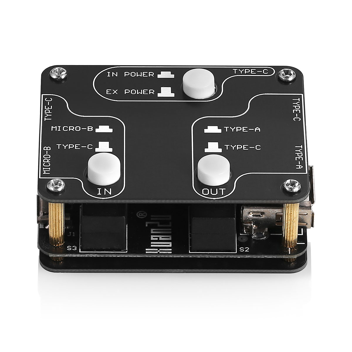 内蔵アイソレーション電源(5V/200mA)はほとんどのポータブルDACを駆動可能。高消費電力デバイス接続時は外付け5Vアダプター(Type-C入力)に自動切替え。電流需要変動の激しい真空管ヘッドホンアンプ接続時でも、電圧降下による「ボリュームむら」を防止します。USBバスパワーと外部電源の二重保護回路により、過電流/短絡事故時の機器損傷リスクを軽減。