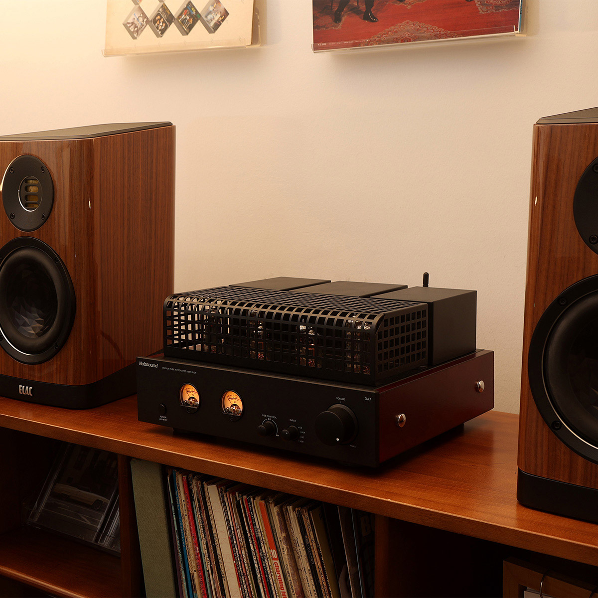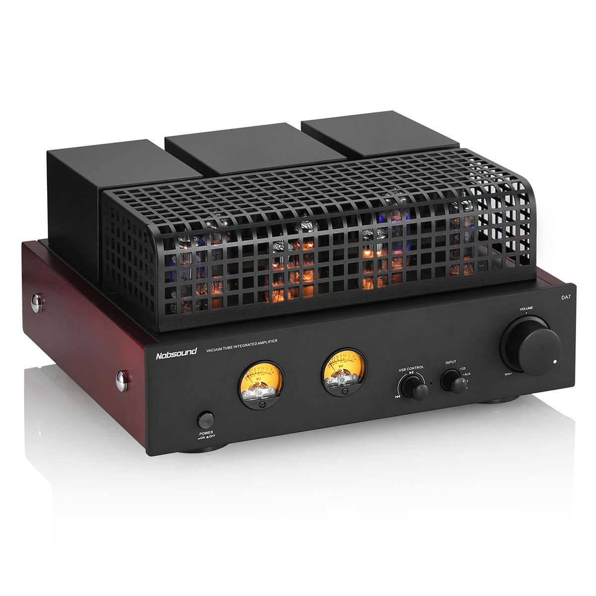 真空管ならではの温かみと、現代の利便性を融合させたNobsound DA7。パワー段に4本の6P1、電圧増幅・ドライバー段に3本の6N1を採用した真空管アンプです。アナログ感あふれる豊かなサウンドに加え、Bluetooth 5.3やUSB 3.0によるデジタル接続、さらにはUSBメモリーからの直接再生にも対応。2つのアナログVUメーターが音楽に合わせて優しく踊り、リスニング体験を視覚的にも彩ります。輸入広帯域EI出力トランスや金メッキ端子など、高品質なパーツを惜しみなく投入し、温かみとディテールを両立したサウンドを実現。リビングや書斎で、心地よい音楽空間を演出する一台です。