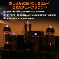 F2の最大の楽しみの一つが、すべての真空管がソケット式で交換可能な管球交換対応です。標準では整流管に5U4G、プリアンプ管に6SN7GT、パワー管に6CA7を採用していますが、それぞれ互換性のある管球への交換が可能です。例えば、プリアンプ管をCV181に変えてより甘みを加えたり、整流管を274Bに変えて音場の広がりを微調整したりと、お持ちのスピーカーや音楽の好みに合わせて音色を「育てていく」過程を楽しめます。これにより、一台のアンプで多様な音の表情を体験できる、上級ユーザーをも満足させる拡張性を備えています。