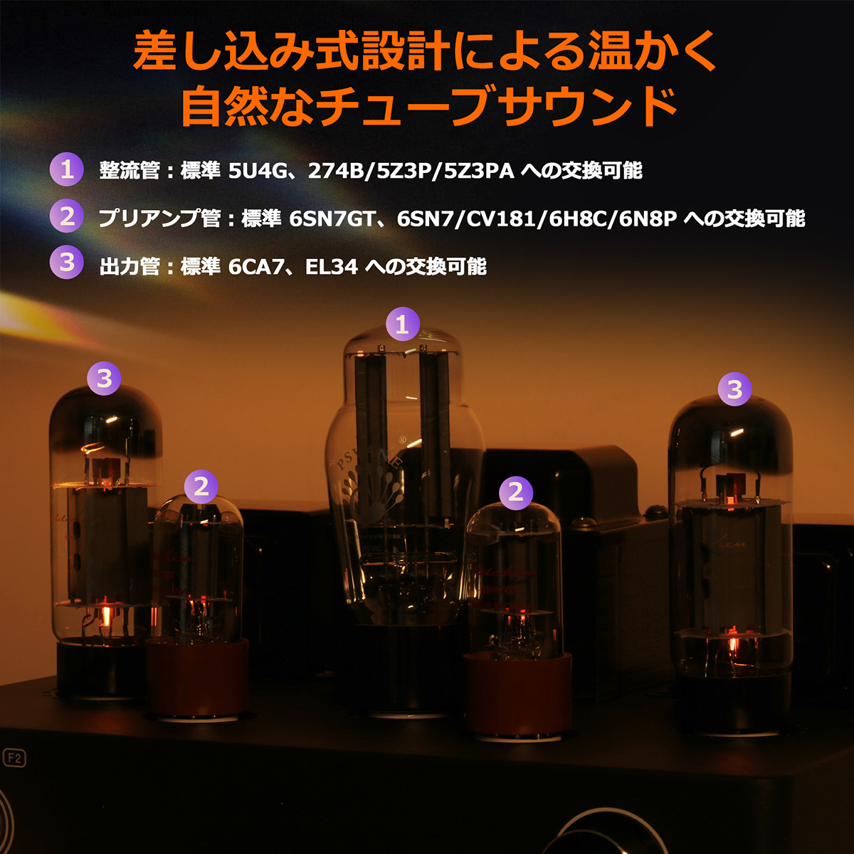 2. 真空管交換(チューブ・ローリング)による音色のカスタマイズ: