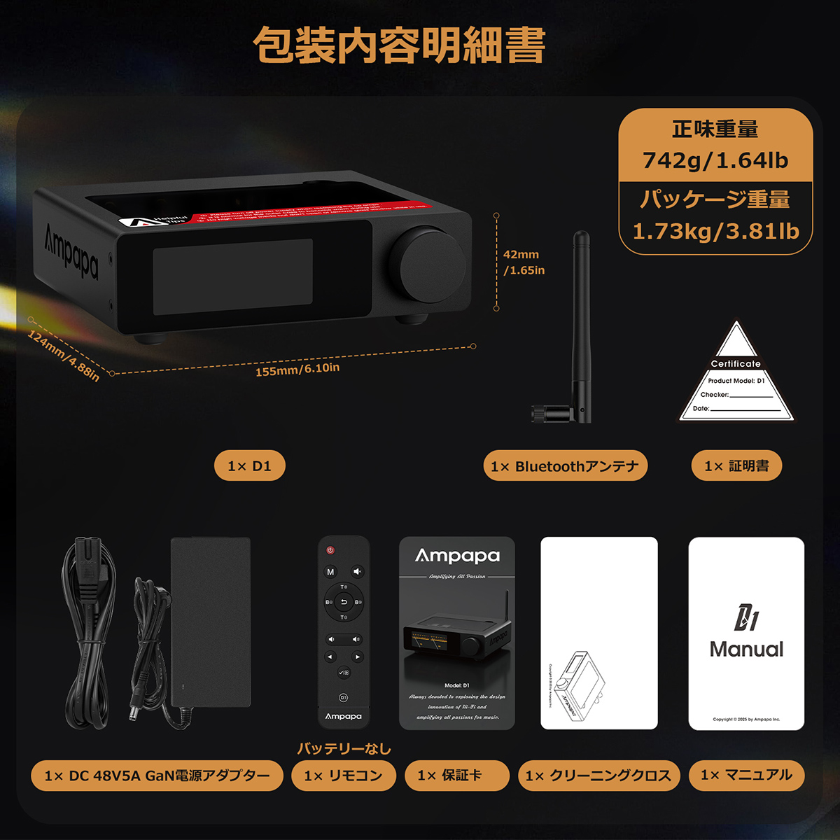 優れた忠実度のためのプレミアム部品: 差し替え可能なNE5532オペアンプは、トップガラスパネルを通じた簡単なアップグレードを可能にし、長期的な柔軟性を提供します。NJW1194チップ、サガミ(SAGAMI)インダクター、2oz銅PCB、GaN 48V/5A電源アダプターに至るまで、あらゆる要素は音の純度のために選び抜かれています。