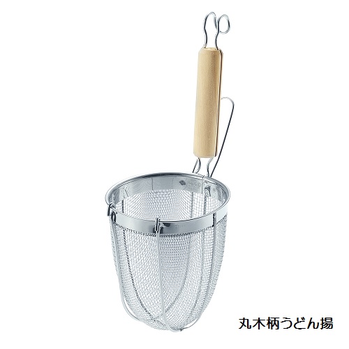 (株)新越ワークス TS 丸木柄うどん揚げ 引掛付 うどんてぼ(18-8アミ・8メッシュ)【品番:30114】