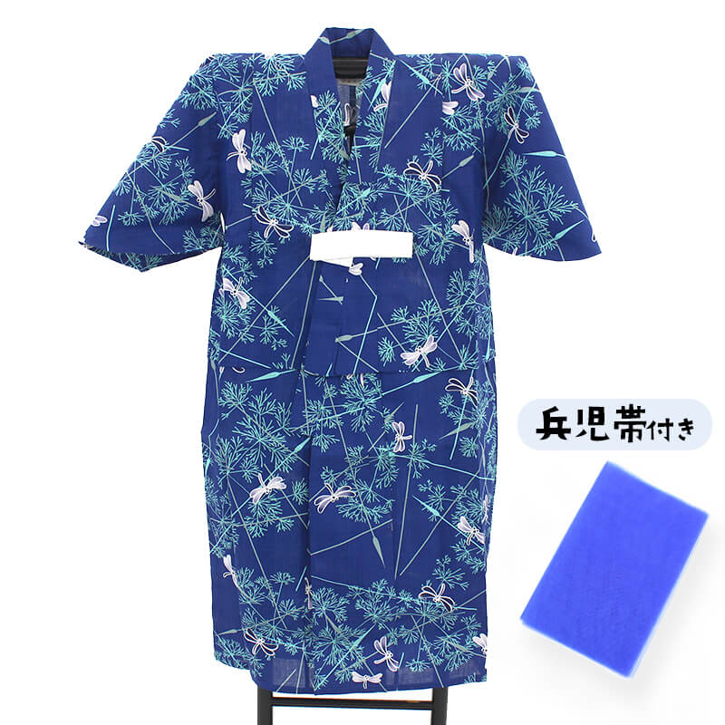 浴衣 子供 男の子 2点セット キッズ ボーイズ ベビー 兵児帯 紺 ネイビー とんぼ柄 100/110 2サイズ展開 【新古品】【メーカー処分品】