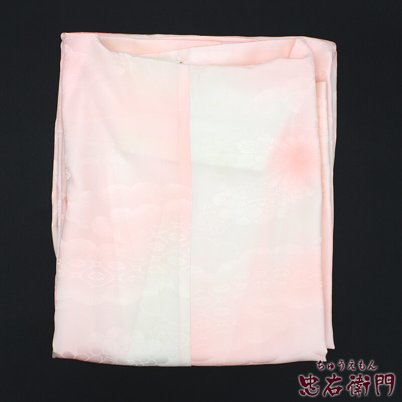 | 【詳細】 | 【 広衿 】 <柄> ピンクと白のぼかしの長襦袢です。 雲取りや菊などの地模様が入っております。 <シチュエーション> 礼装用・カジュアルいずれにもご利用頂けます。 <風合> つるりとした薄い光沢のある長襦袢です。 化繊です。 <状態> 単衣仕立てです。 衿に変色があります。 取り替えてご利用下さい。 裾に薄汚れがあります。 そのほか、収納のシワ、着用のシワ、薄汚れ等がある為、特価でのご提供です。 ※身丈は、肩から裾までを測っています。 | |
