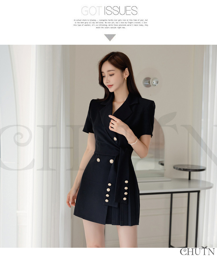 黒スーツワンピースタイトワンピースミニ 半袖プリーツドッキングワンピース 着痩せ 韓国風 ワンピーススーツ 夏物 スーツワンピース スーツ 高級感 気質 大人