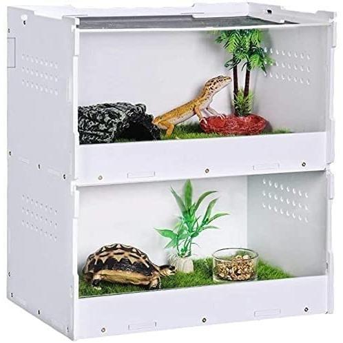 飼育ケース 爬虫類・両生類用飼育ボックス 二層給餌ボックス ペットインキュベーター 通気性 脱走防止 爬虫類ボックス 爬虫類餌箱 亀/トカゲ/蛇/蛙/昆虫など適用
