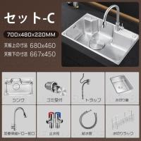 シンク ステンレス 流し台 タンク 混合水栓 大判 大容量 DIY キッチン SUS304 油対策 耐摩耗 手入れやすい 厚手 台所 ゴミ受け 蛇口 混合水栓 水切りラック付