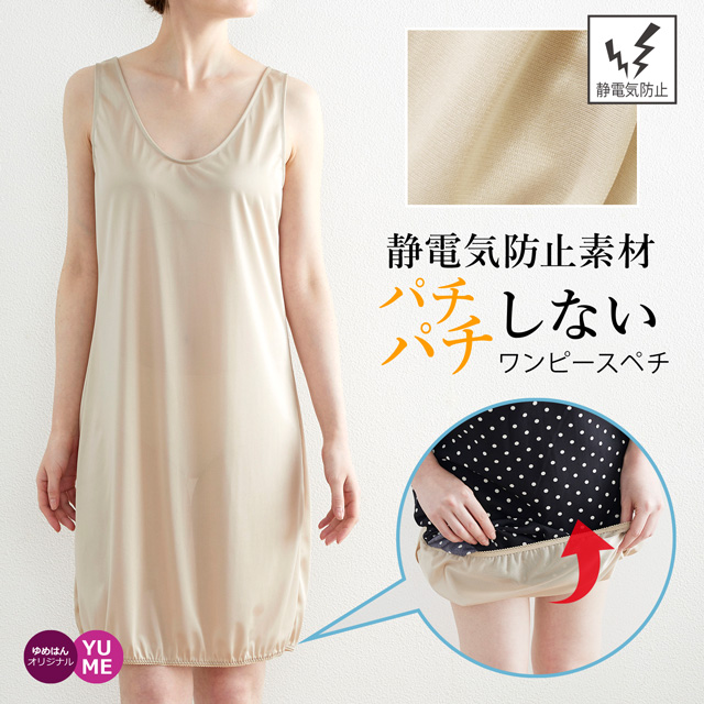 ペチコート ペチワンピ 静電気防止 ワンピース インナー ノースリーブ 透け防止 透けない スカート 膝上 膝下 裾ゴム トイレ