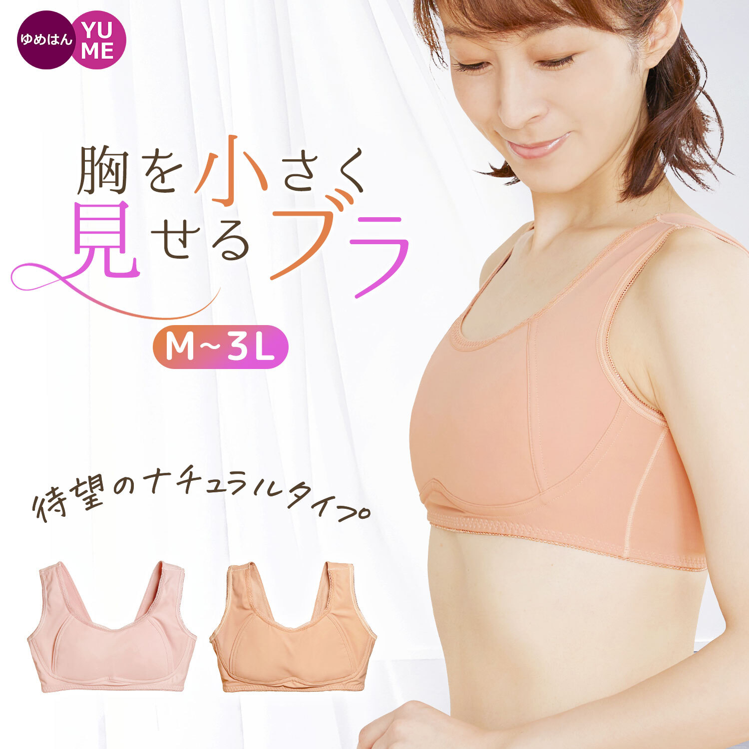 ぺたんこパネルでバストを押さえて、サイドのパワーネットで横広がりを防ぐので、形を崩さずにすっきりボリュームダウンできます。