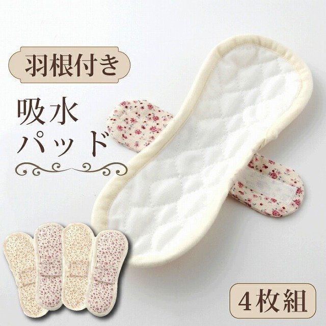 尿漏れパッド 尿とりパッド 吸水パット 女性用 日本製 羽つき 防災 安心 消臭 洗える 軽失禁 ちょい漏れ 35cc 吸水ライナー ナプキン シート 花柄 2色4枚組