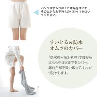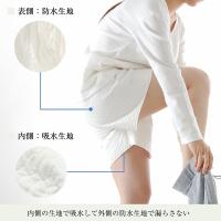 「防水布+吸水素材」で腰から太もも中ほどまで、モレエリアをカバー
