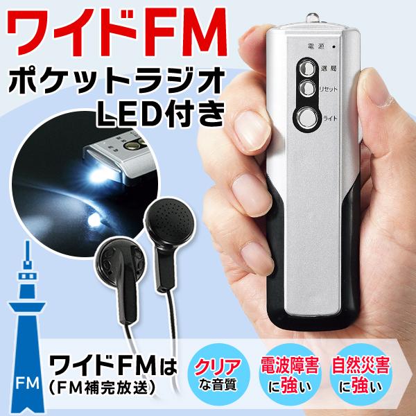 ラジオ LEDライト付き 防災 イヤホン付き AM ワイドFM対応 ミニサイズ 電池式 軽量 小型 情報 アウトドア スポーツ観戦 散歩 送料無料 100K◇ ラジオSTI