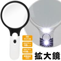 ルーペ 拡大鏡 ライト付き 45倍 手持ち 老眼鏡 虫めがね 読書 新聞 雑誌 辞書 地図 説明書 作業 シンプル 円形 敬老の日 送料無料 5M◇ ライト付拡大鏡