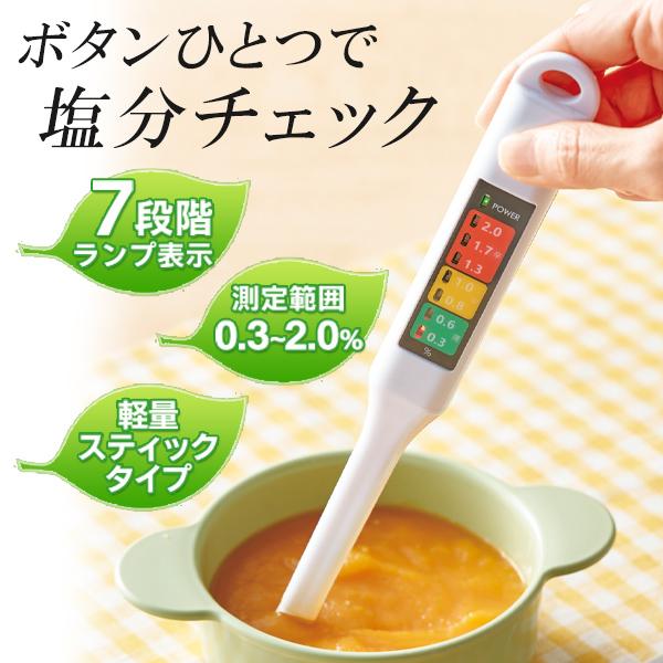 塩分濃度計 デジタル 塩分計 測定器 塩 控えめ 減塩 塩分チェッカー 7段階 ランプ表示 食事 味噌汁 ジュース 健康管理 送料無料 100K◇ NEW塩分チェックメーター