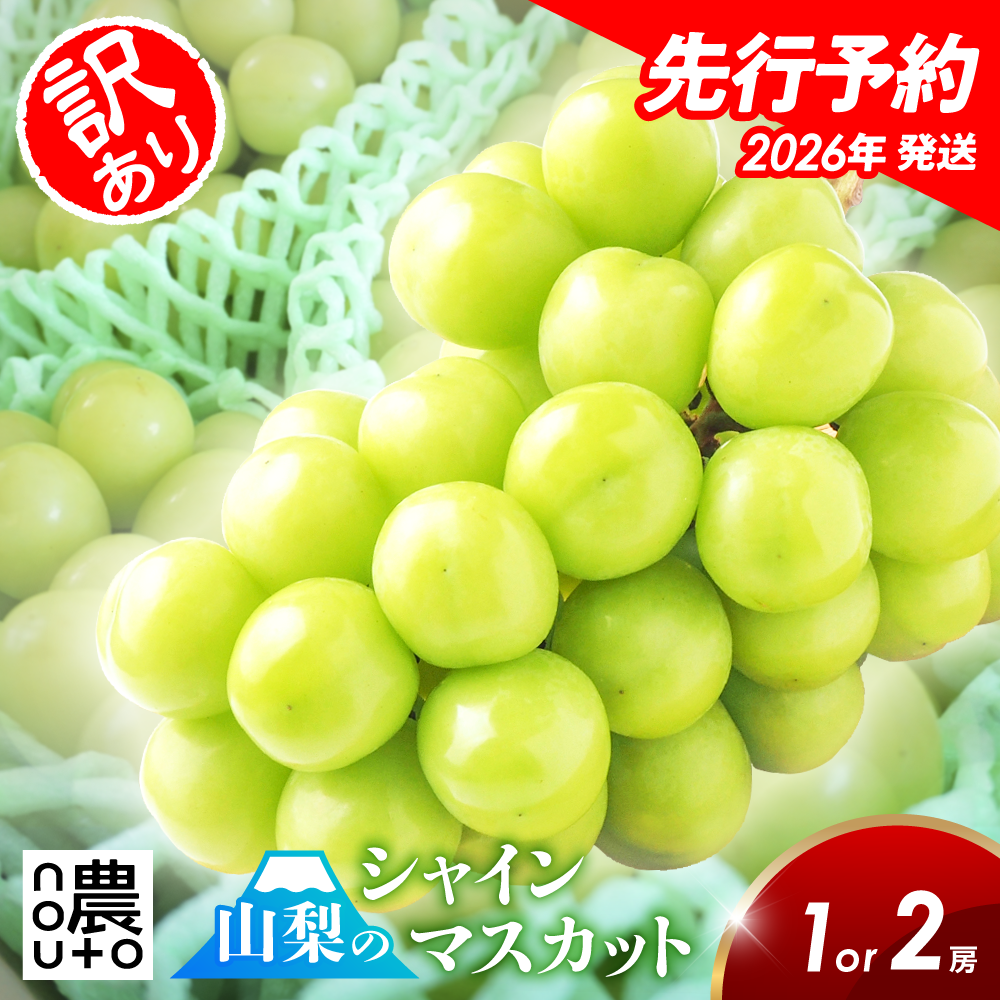 山梨の恵まれた環境で育ったパツパツのシャインマスカット。贈り物にもおすすめ♪