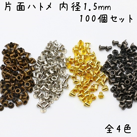 ハトメ 内径 1.5mm 100個 セット 全4色 ハトメ ハトメ金具 パーツ ベルト 革 穴 ゴールド シルバー ブラック 黒 卸 卸売り セット まとめ買い