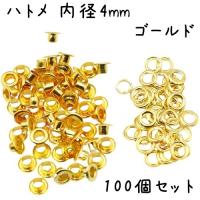 ハトメ 内径 4mm 100個 セット 全4色 ハトメ ハトメ金具 パーツ ベルト 革 穴 ゴールド シルバー ブラック 黒 卸 卸売り セット まとめ買い