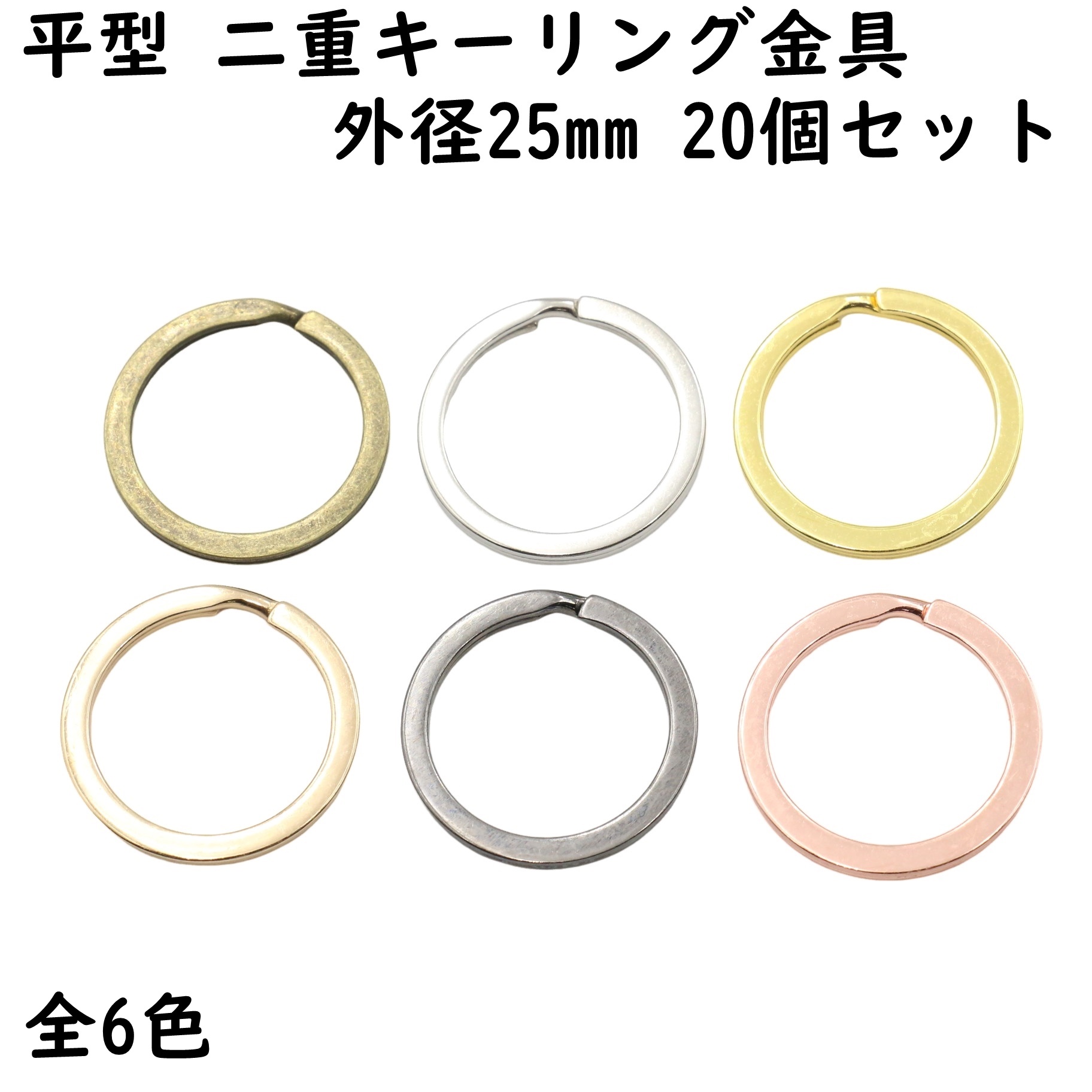 [20個セット] 平型 二重リング キーリング 金具 25mm Wリング 平型キーリング キーホルダー パーツ キーリング金具 アクセサリー ハンドメイド オススメ 全6色