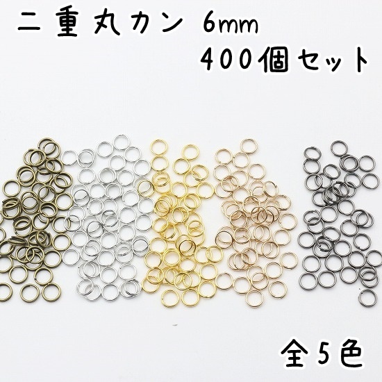 二重丸カン 二重リング 丸カン 外径6mm 400個セット 全5色(アンティークゴールド・シルバー・ゴールド・ライトゴールド・ガンメタブラック)
