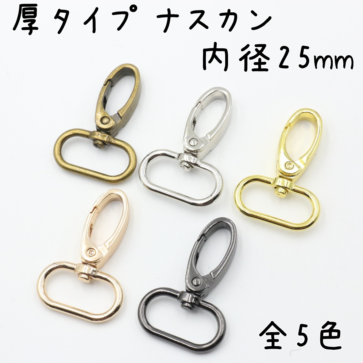 厚型 ナスカン 25mm 内径 6個セット 全5色 回転式 ロック カラビナ なすかん 金具 パーツ ハンドメイド 材料 手芸 レザークラフト ナスカン金具 カラビナフック