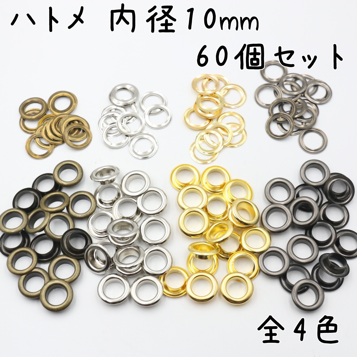 ハトメ 内径 10mm 60個 セット 全4色 ハトメ ハトメ金具 パーツ ベルト 革 穴 ゴールド シルバー ブラック 黒 卸 卸売り セット まとめ買い