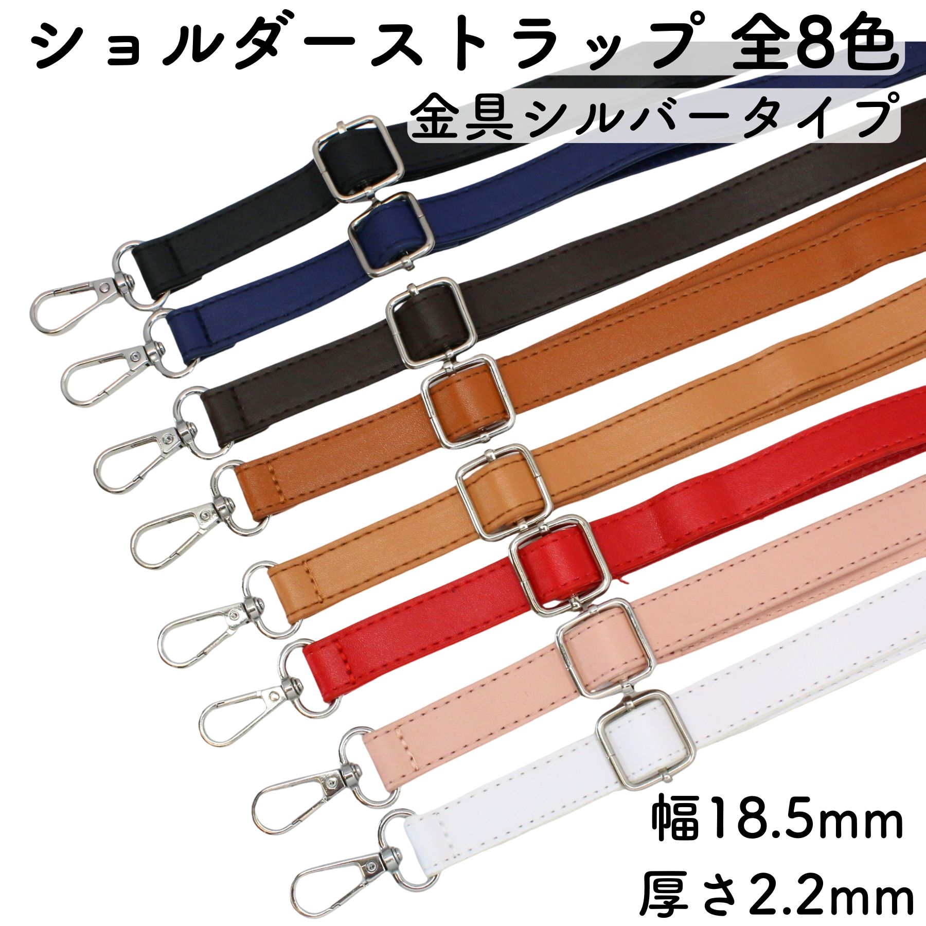 ショルダー ストラップ シルバー PUレザー 全8色 長さ調整可能 ショルダーベルト おしゃれ バッグ 携帯 スマホ 斜め掛け 交換 DIY ハンドメイド オススメ