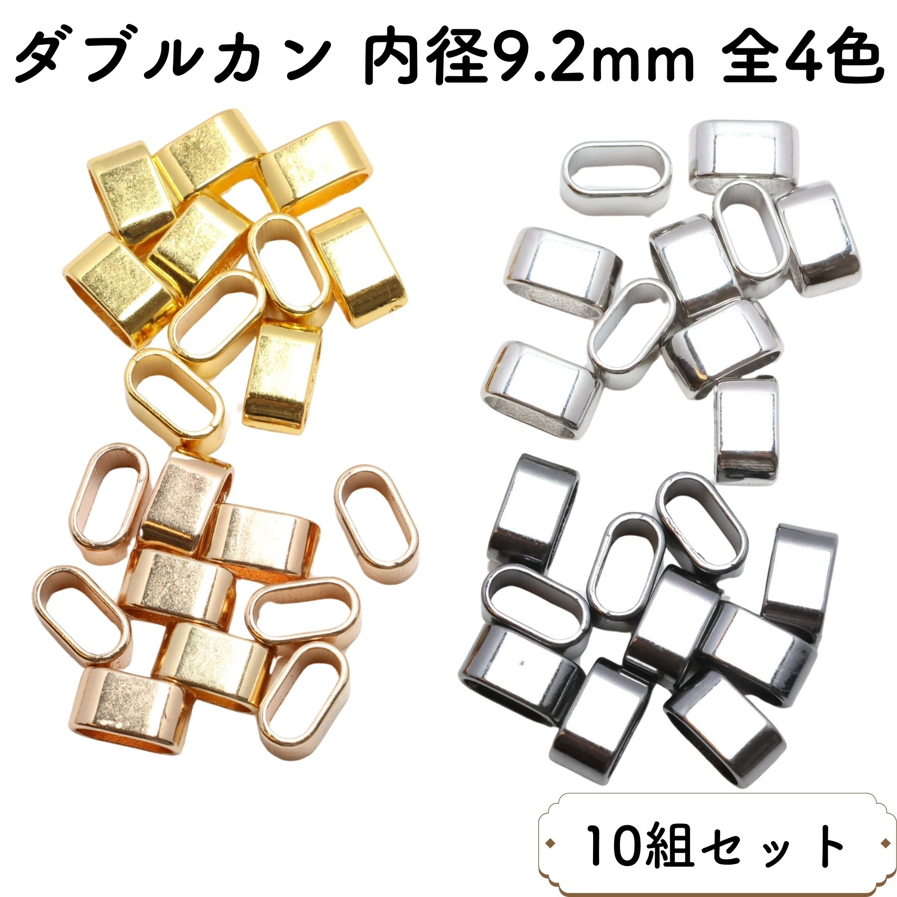 [10個] ダブルカン 内径 9.2mm 全4色 ストラップ 紐止め パーツ スマホ ショルダー ネック パーツ 金具 メタル 調節 アジャスター 留め具 ハンドメイド オススメ