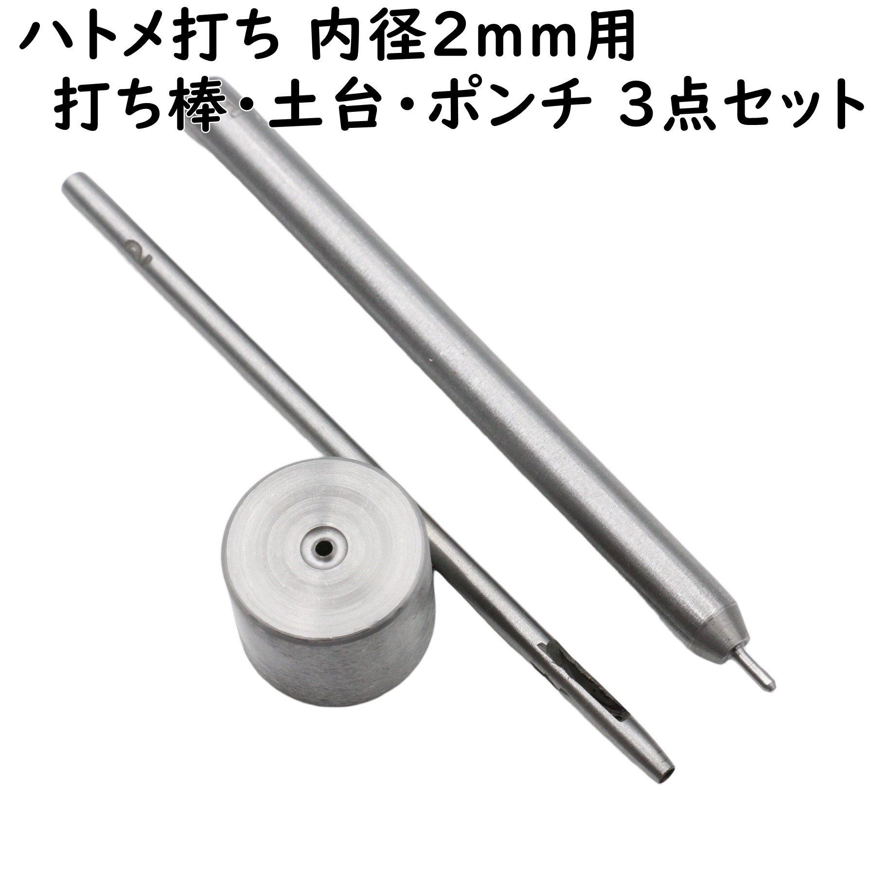 ハトメ 打ち具 打ち棒 打ち台 ポンチ 3点セット 2mm用 ハトメ打ち 打ち棒 穴あけポンチ ハトメ打ち具 ハトメ用 打棒 打皿 道具 DIY 卸 卸売り ハンドメイド