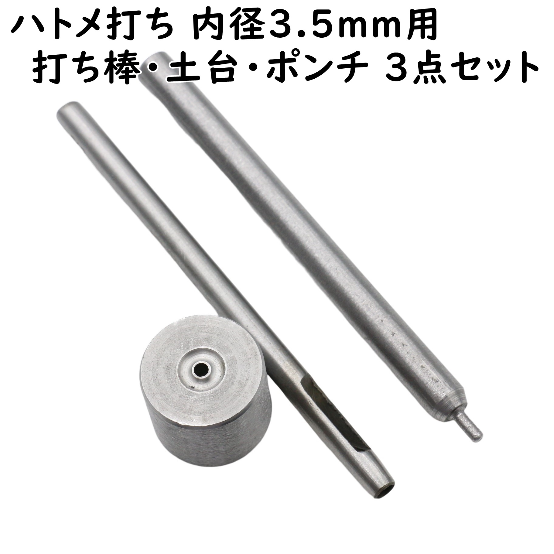 ハトメ 打ち具 打ち棒 打ち台 ポンチ 3点セット 3.5mm用 ハトメ打ち 打ち棒 穴あけポンチ ハトメ打ち具 ハトメ用 打棒 打皿 道具 DIY 卸 卸売り ハンドメイド