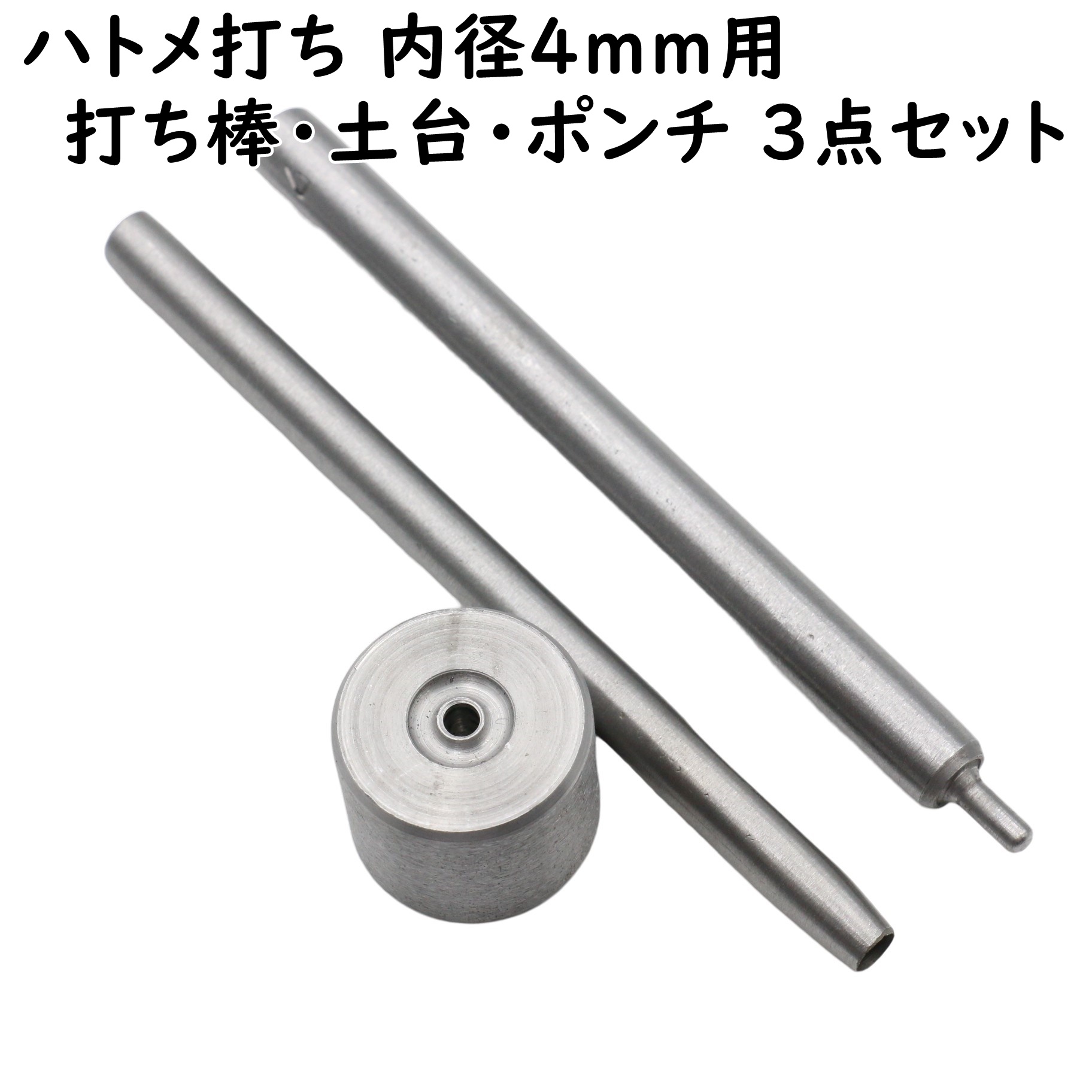 ハトメ 打ち具 打ち棒 打ち台 ポンチ 3点セット 4mm用 ハトメ打ち 打ち棒 穴あけポンチ ハトメ打ち具 ハトメ用 打棒 打皿 道具 DIY 卸 卸売り ハンドメイド