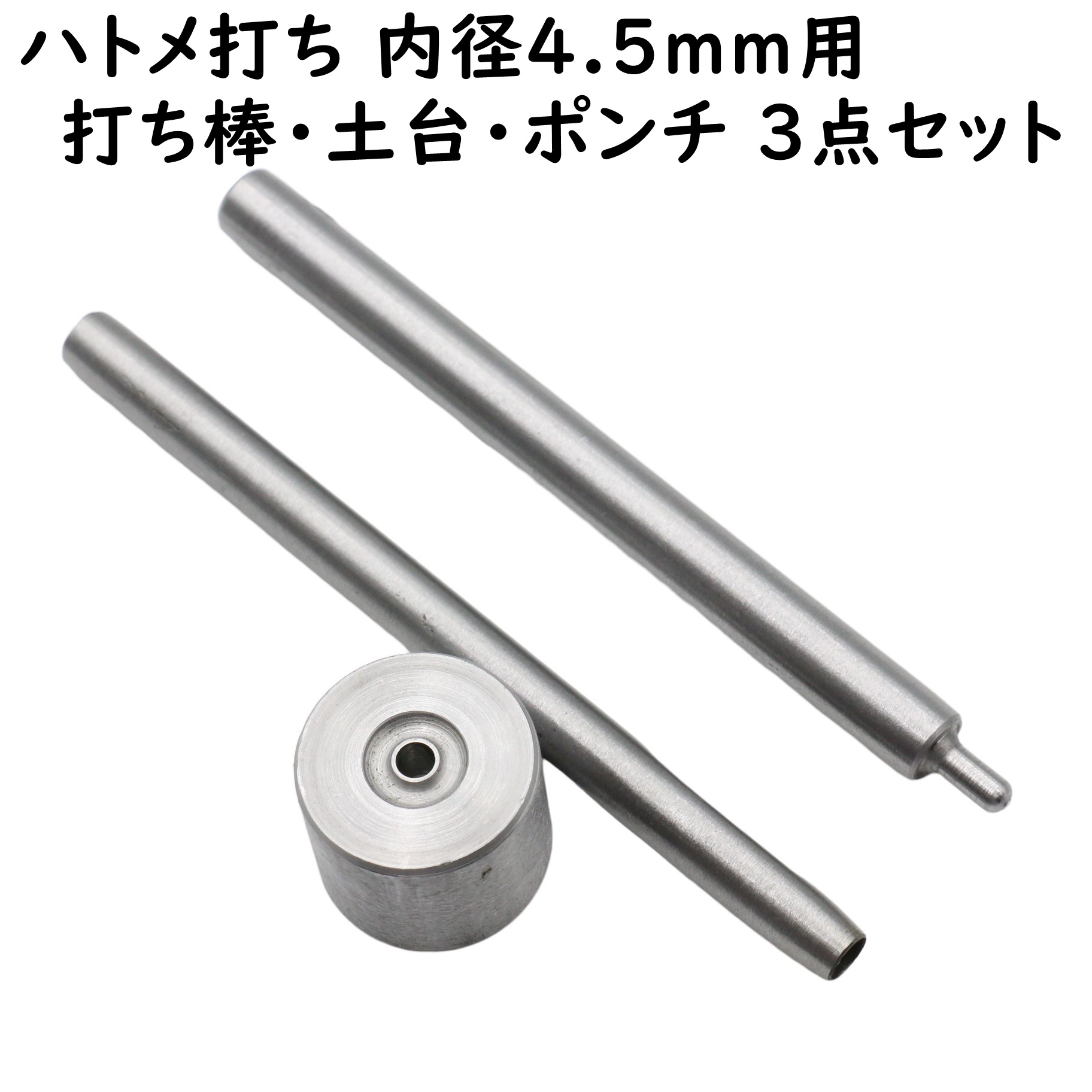 ハトメ 打ち具 打ち棒 打ち台 ポンチ 3点セット 4.5mm用 ハトメ打ち 打ち棒 穴あけポンチ ハトメ打ち具 ハトメ用 打棒 打皿 道具 DIY 卸 卸売り ハンドメイド