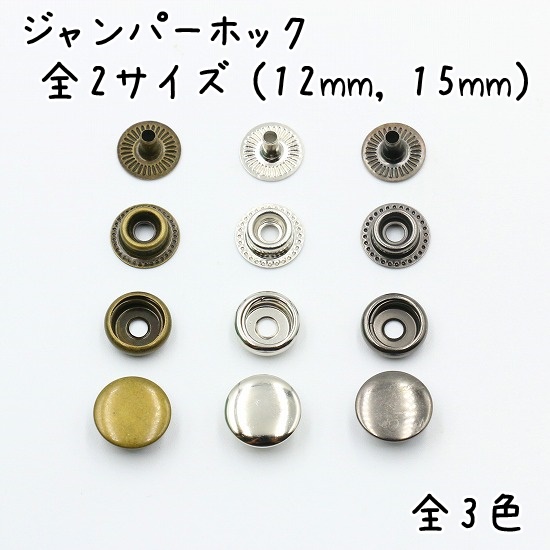 ジャンパーホック 50組セット (12mm, 15mm) 全2サイズ 全4色 ジャンパードット アメリカンホック ボタン ホック パーツ 金具 手芸 バッグ ポーチ 補修 修理